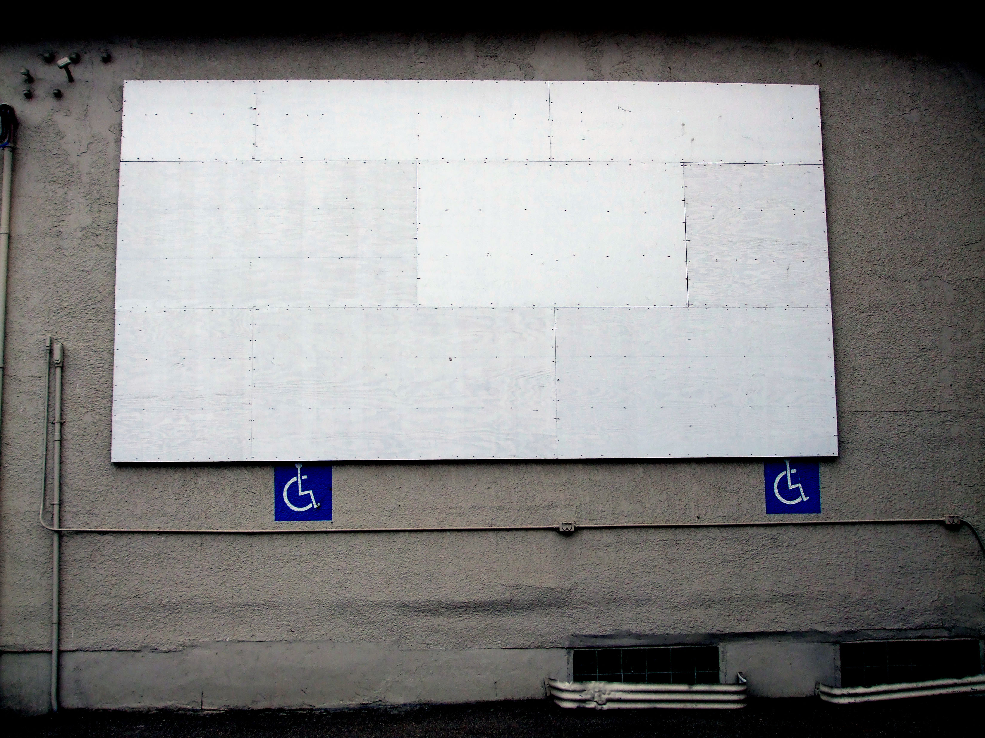 Tate Etc. Issue 16 – Summer 2009 has an article by David Batchelor on Monochromes, which can be found on line at: http://www.tate.org.uk/tateetc/issue16/colourchart2.htm. The passage on Found Monochromes was of particular interest to me. I had already started to photograph white boards and signs, but the article served to sharpen my attention to the idea of Found Art. Whereas the Ready Made was an everyday object transformed into art through its inclusion in the gallery space, Found Art is something discovered in the world that references an idea, or object, that has its origins in the art world. David Batchelor’s Found Monochromes would be one example. Another would be buildings (under construction, or renovation) wrapped in tarps which are reminiscent of Christo’s wrapped buildings and objects. Photographing Found Art could be just a documentary exercise, but I tend to think of it more as a hybrid of documentation and creation: the photograph is in itself a new work and put into an art context can be seen as such.