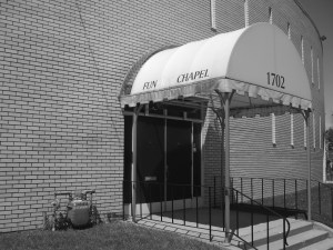 One of the things I enjoy about photography is it’s ability to transform the world into pictures, which seems like a ridiculously obvious thing to say – the transforming part that is. In becoming pictures a new world is created. After I’ve taken a photograph I usually stop thinking about it’s connection to what was photographed and think only about the world of the photo itself and sometimes it’s relation to other photographs. For example, something I thought of as ugly in the world can become beautiful in a photograph; a badly designed building becomes interesting as a design element in a well composed image; relationships that didn’t exist between things are created by their inclusion together in a frame, or between frames (as in Bern and Hilla Becher’s photos) . This picture doesn’t have much to do with that. I just like how the Funeral Chapel, with the erasure of a few letters, has become the Fun Chapel.