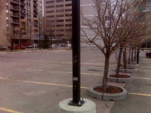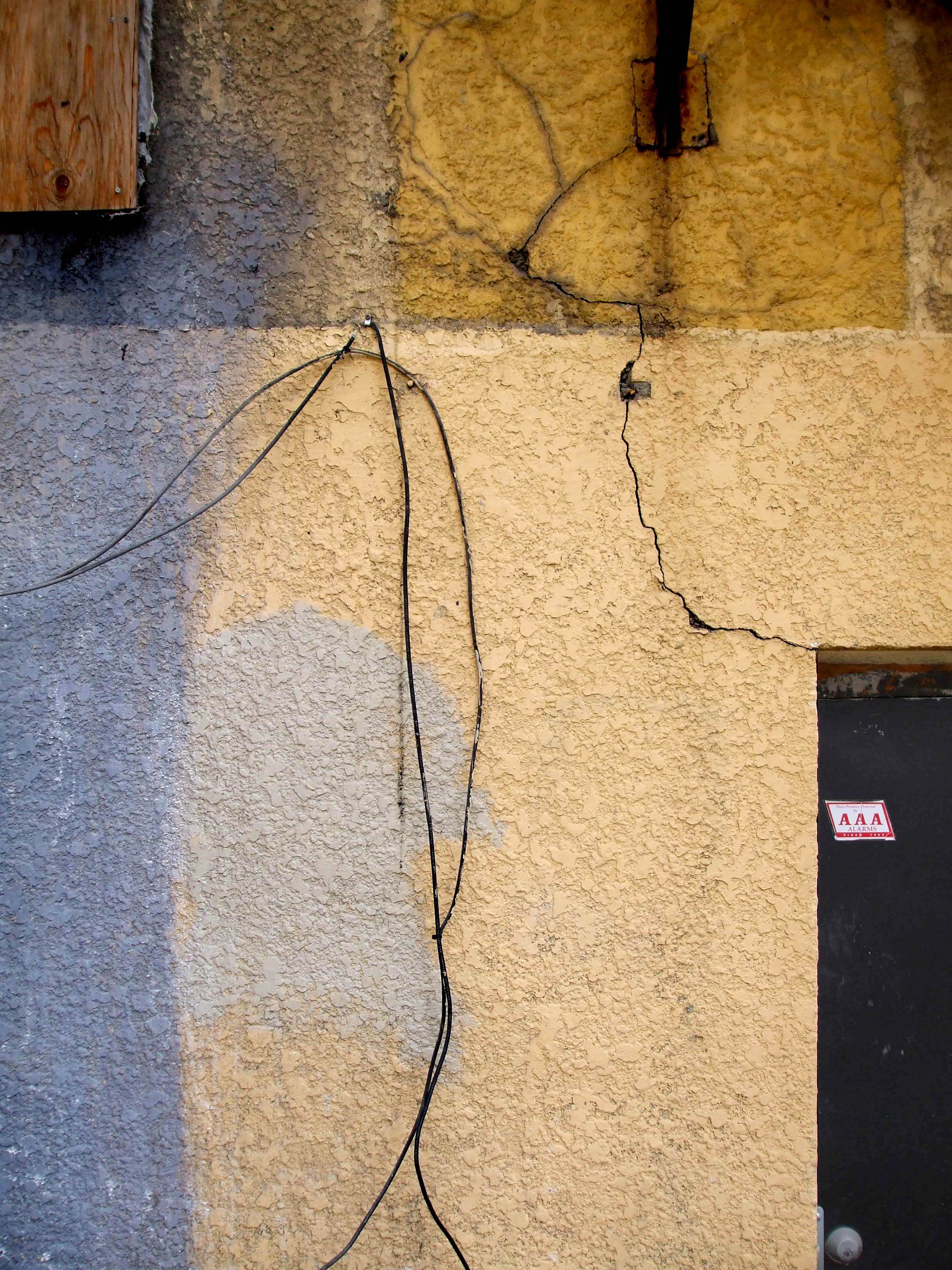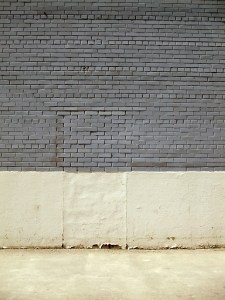 Here I’m trying to disrupt the way single point perspective is read in a way that is similar to the photos of walls, where two walls intersect in a corner, . With the corner shots the mind goes back and forth between wanting to read the image as flat or as receding, animating what would otherwise be a static image. Here the pole serves a similar purpose, but divides the image in a way so that it reads like a collage.