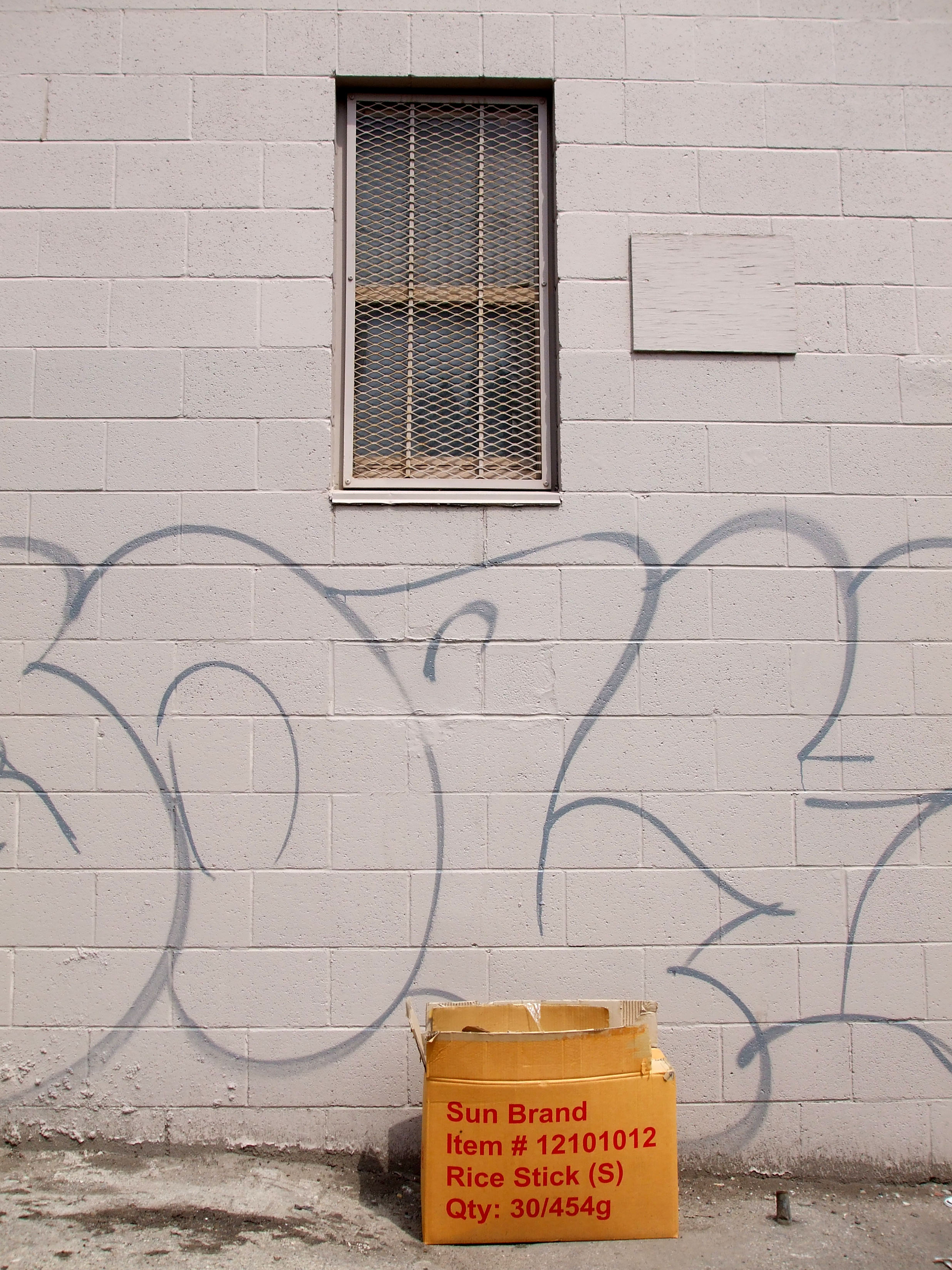 City walls, especially the walls of commercial buildings, are a kind of canvas that are worked on by multiple authors. Sometimes the authors are in conversation with each other, as with the graffiti writers and those who remove it. Often the walls are used to communicate some message – often prohibitory, sometimes declarative, occasionally persuasive. Time and light are authors. In one image a dialogue can be created between bureaucratic signs, street art, shop keepers signs, surface texture, colour, materials, colour, light and shadow. The dialogue is captured and created by the parameters of the frame – the components of the dialogue preexisted the photograph but were not necessarily in conversation, or relation, with each other.